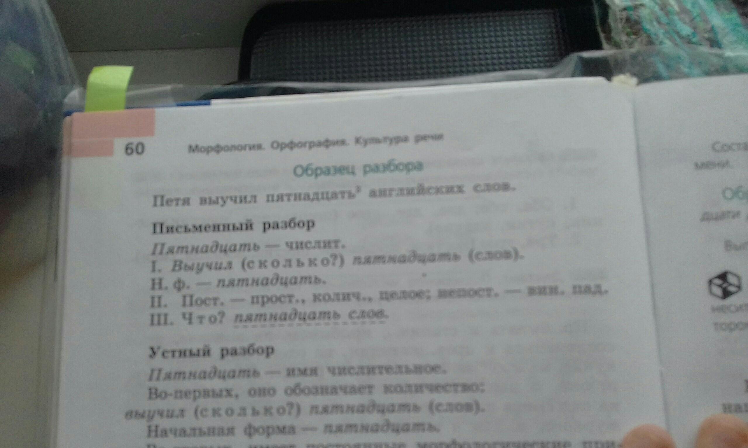 На фото образец морфологического разбора числительного.