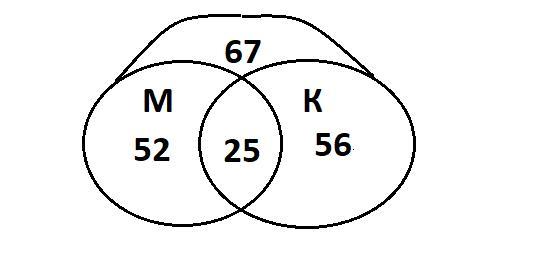 М∪К = 200 - 67 = 133 - спортсмены.