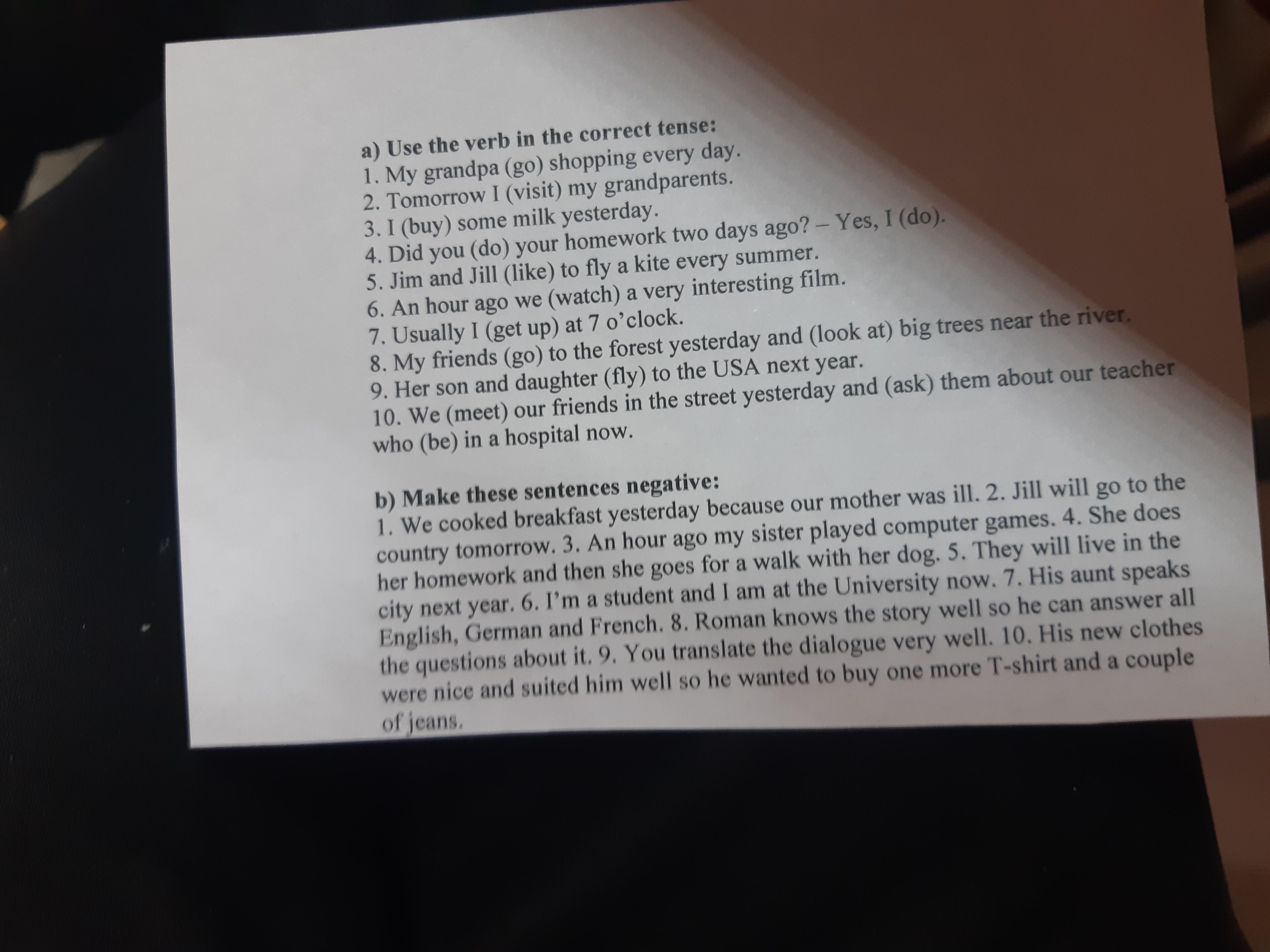 Нужно сделать предложения отрицательными.