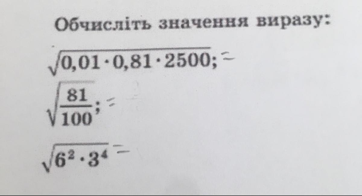 √(0,01 * 0,81 * 2500) = √0,01 * √0,81 * √2500 = 0,1 * 0,9 * 50 = 4,5,