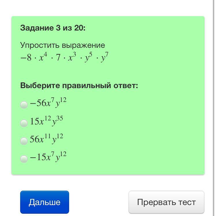 Первый ответ, т.к. При умножении чисел с одинаковыми основаниям степени складываются