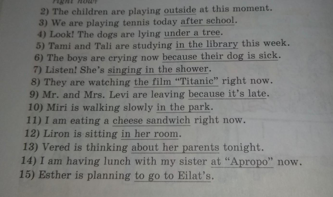 Вопросы должны быть заданы к подчеркнутым словам, то есть определяем, какое вопросительное слово нужно использовать, а затем задаем вопрос, помня про порядок слов: