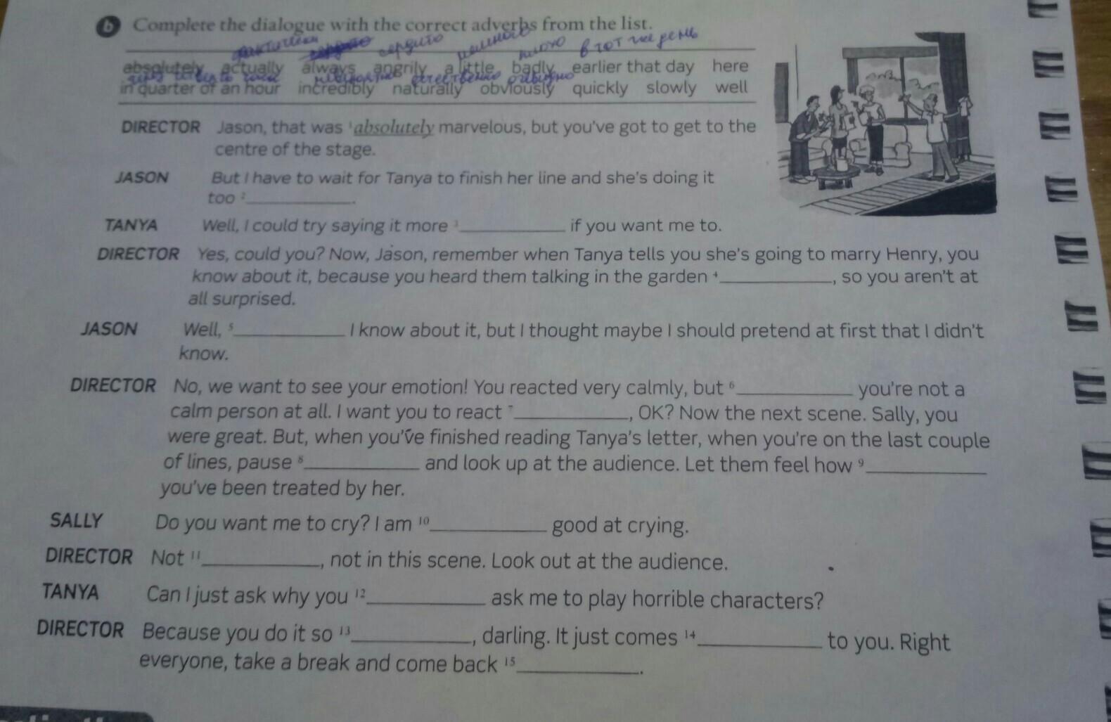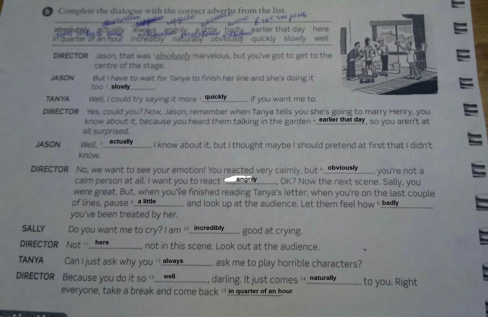 помогите пожалуйста, там нужно вставить наречия которые на верху-