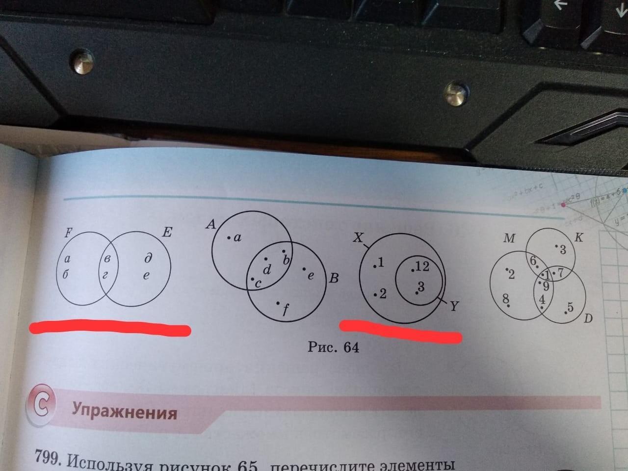 помогите пж.перечислите элементы объеденения и пересечения множеств,изображенных на рис 64(1и3),