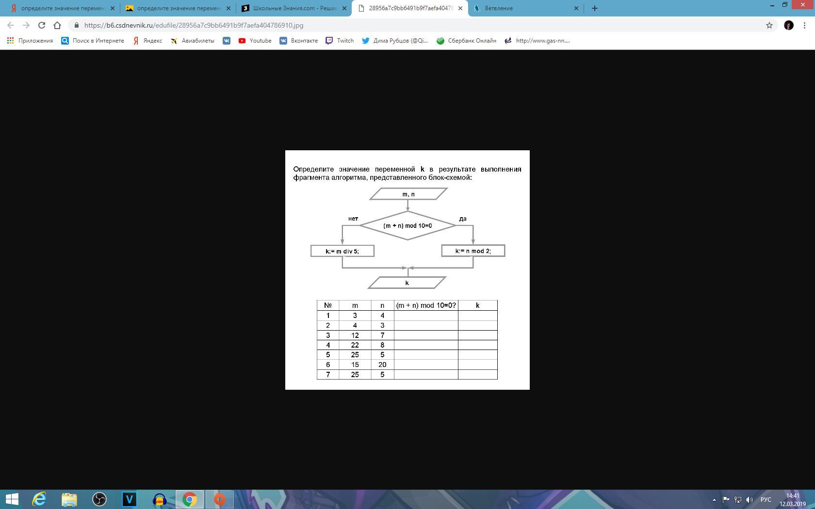 определите значение переменной k в результате выполнения фрагмента алгоритма ,представленного блок схемой
