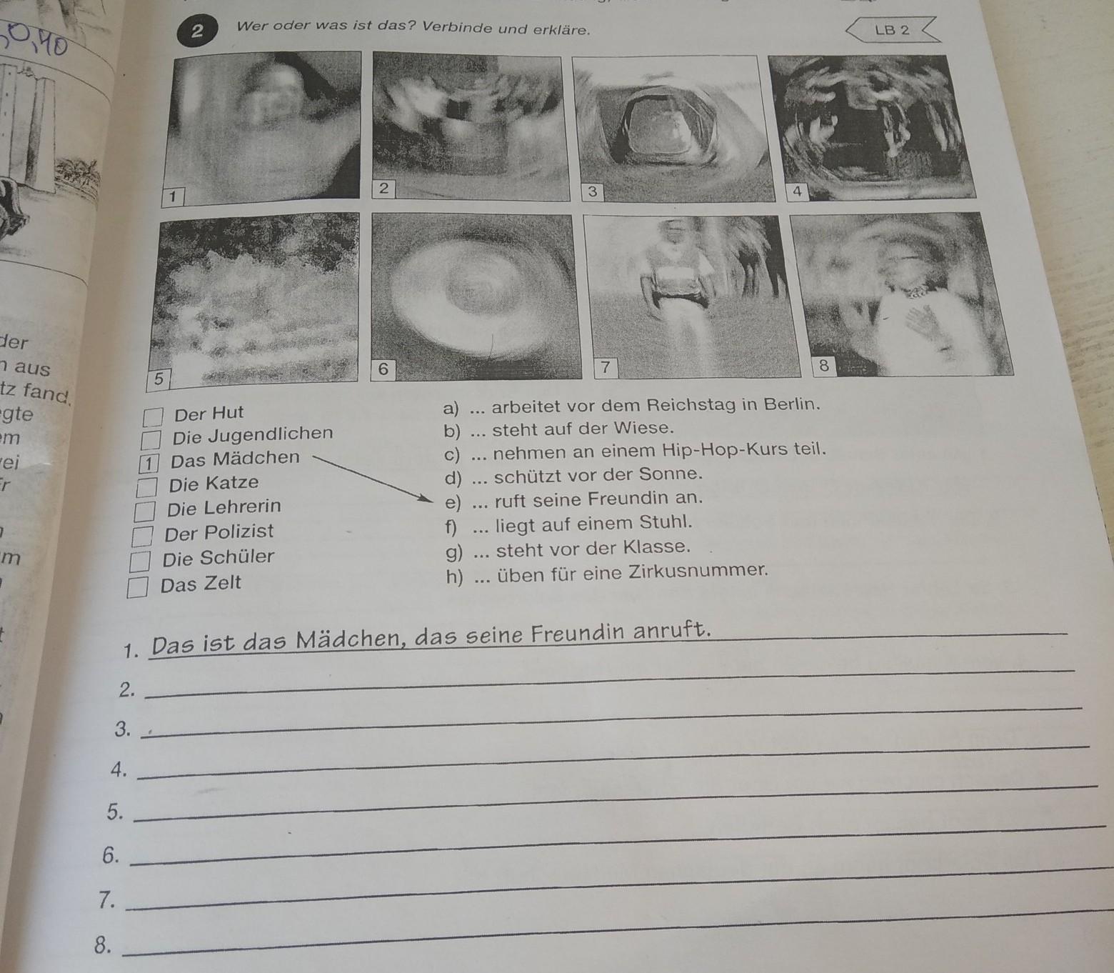 8. Das ist die Lehrerin, die vor der Klasse steht.