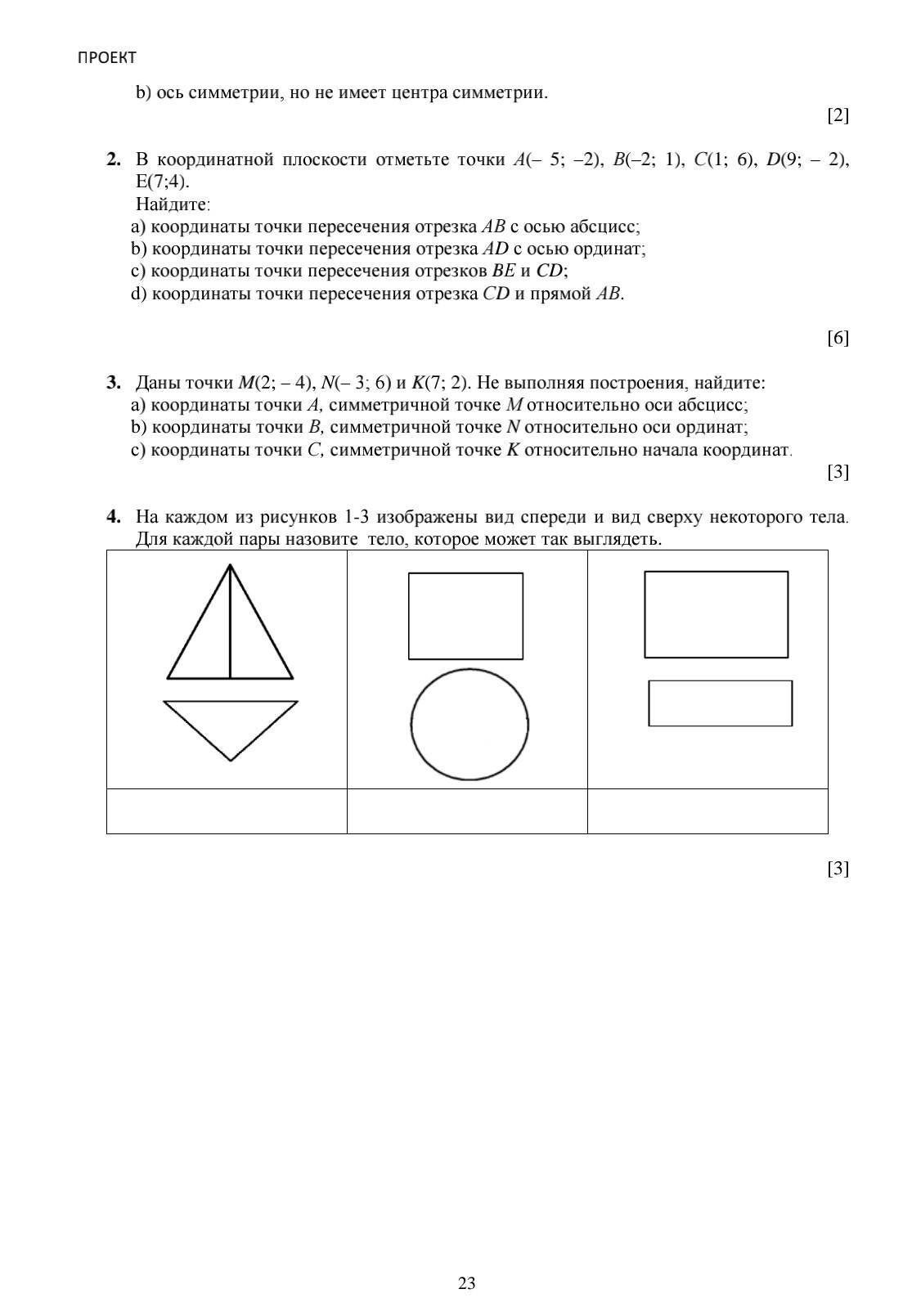 симметрия относительно оси абсцисс (при этом точка с координатами (a; b) переходит в точку с координатами (a; -b)); аналогично и относительно других осей, просто меняй знаки на противоположные, в 3 задании ничего строить не надо