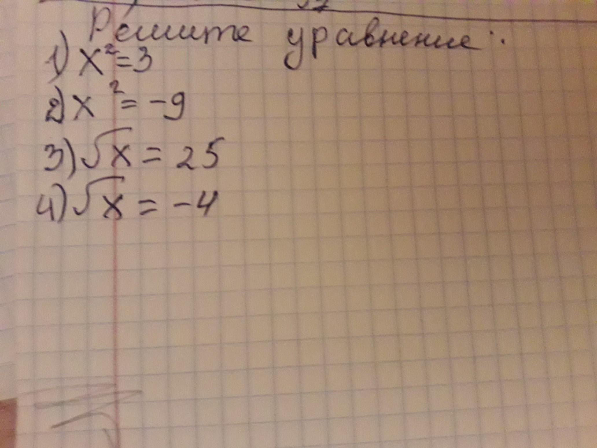 4) нет решения (корень из х не может равняться отрицательному числу)