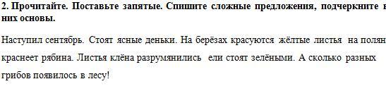 Наступил сентябрь. Стоят ясные деньки. На берёзах красуются жёлтые листья, на поляне краснеет рябина. Листья клёна разрумянились, ели стоят зелёными. А сколько разных грибов появилось в лесу!
