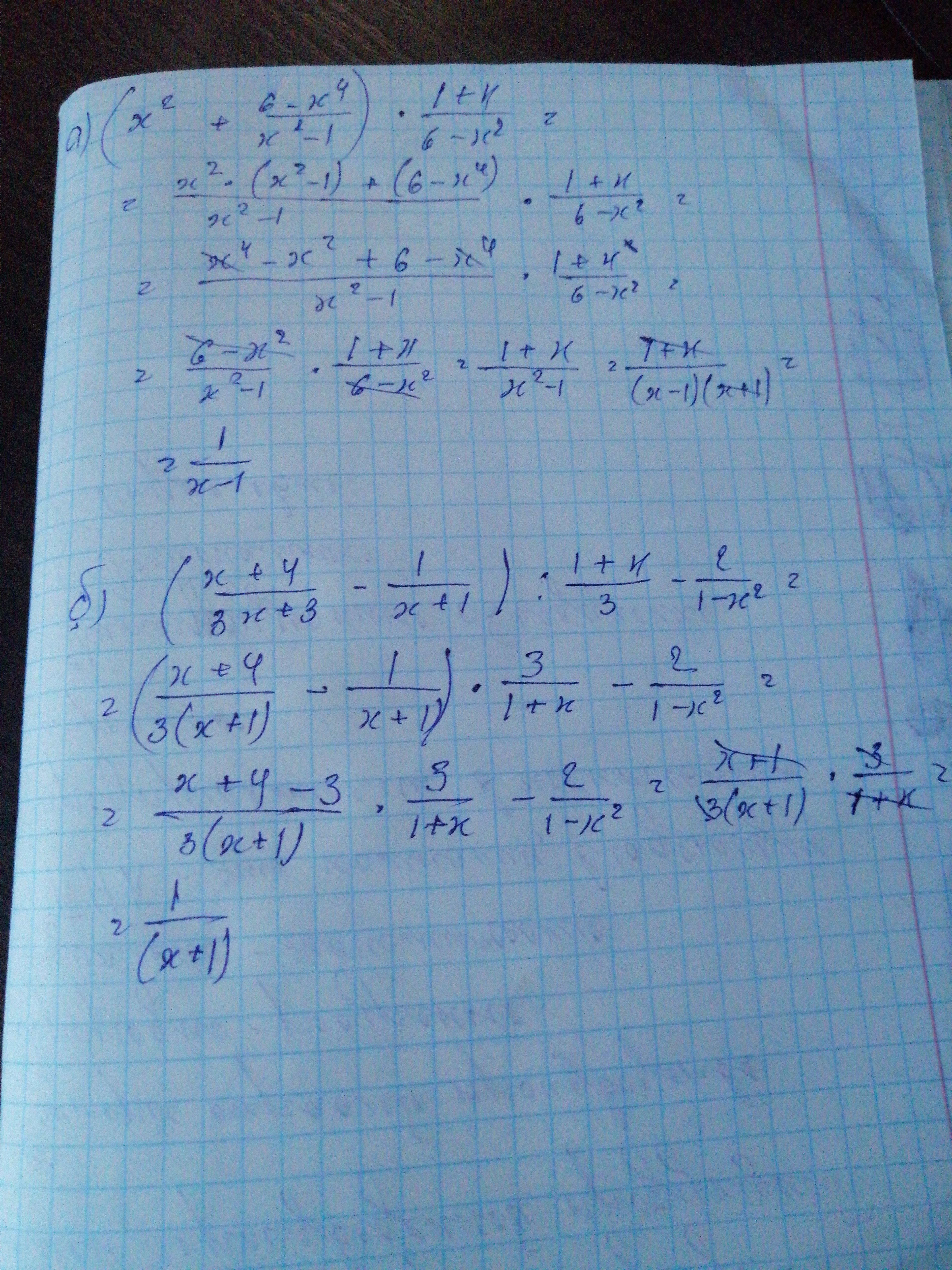 а)(х²+6-х⁴/х²-1)×1+х/6-х²