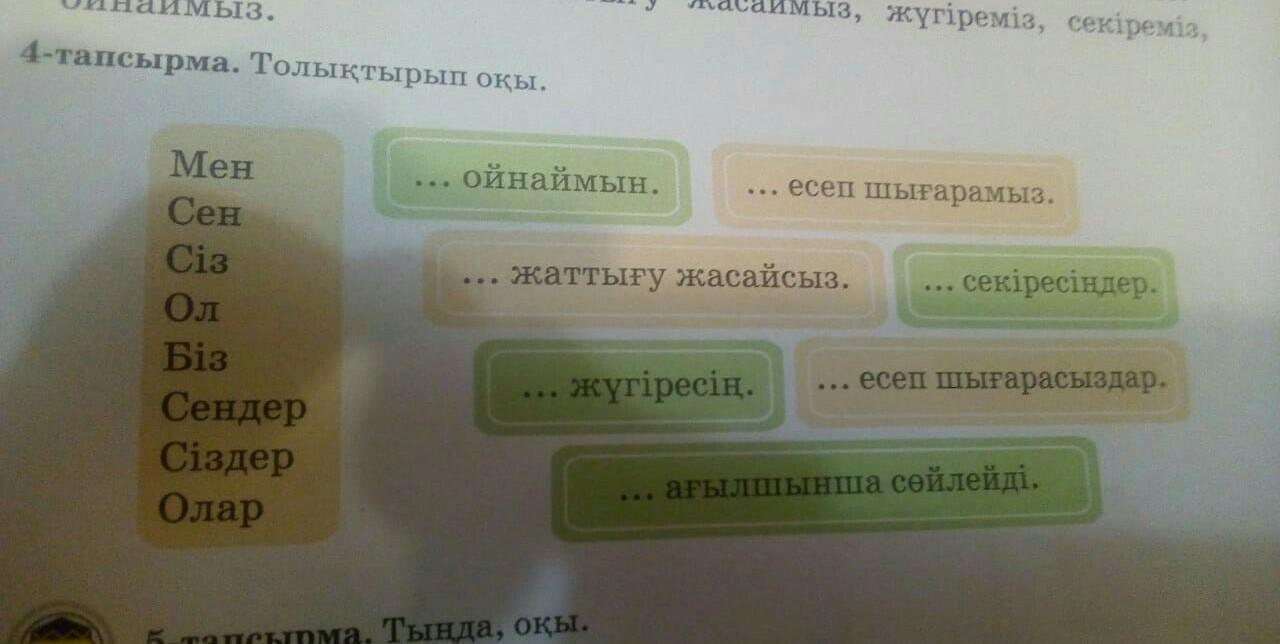 Мен,біз, сіздер,сендер,сен,сіз,олар