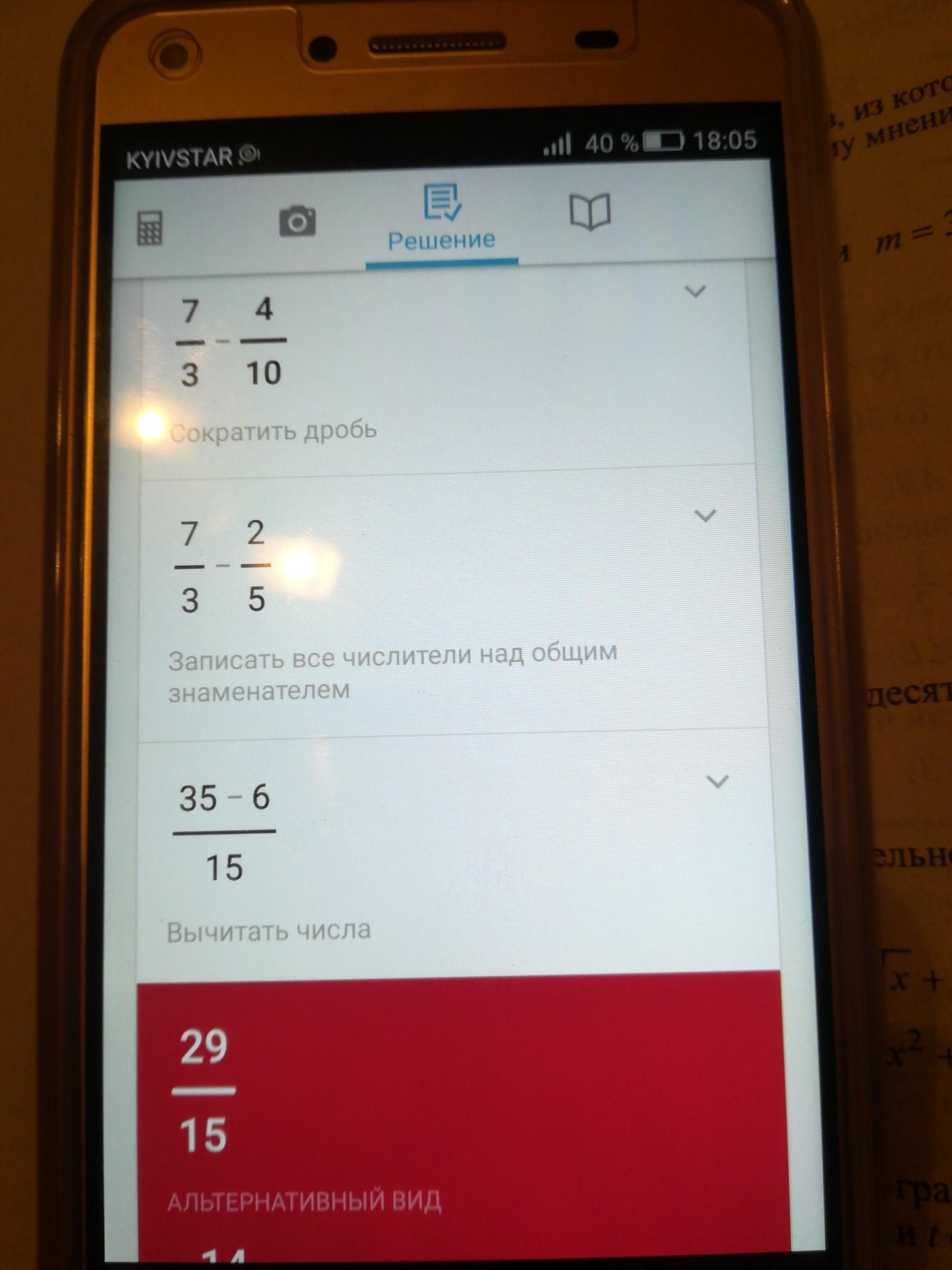 7/3 - 4/10 = 70/30 - 12/30 = 58/30 = 1цел28/30 = 1цел 14/15