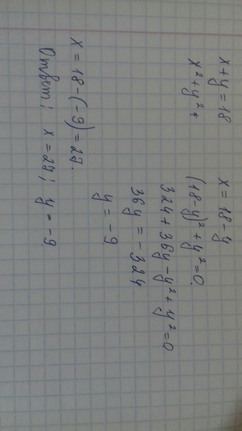и если проверить, тоже получается. например там было х+у=18. 27+(-9)=18