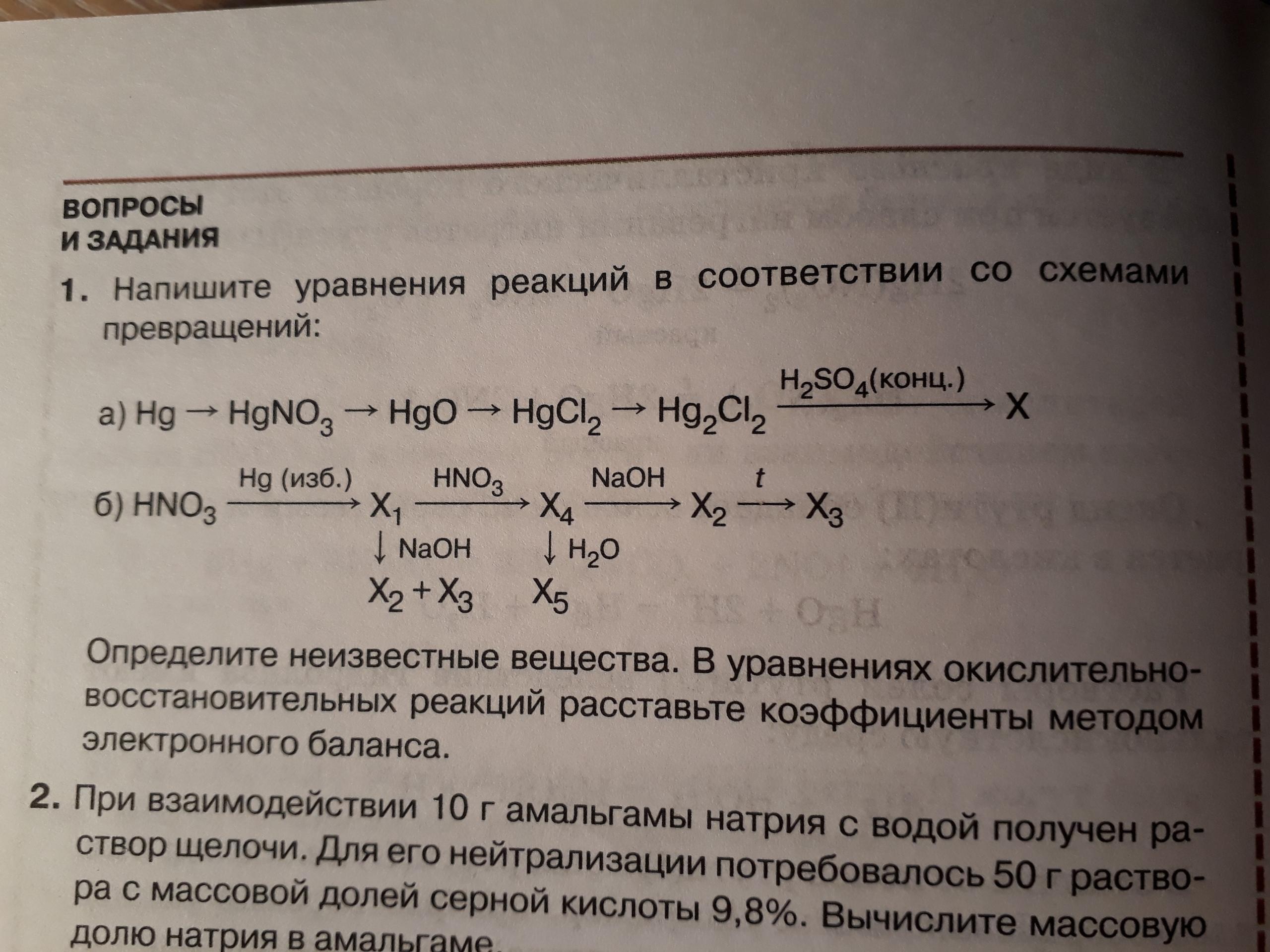б) 4HNO3+2Hg=Hg2(NO3)2+2NO2+2H2O