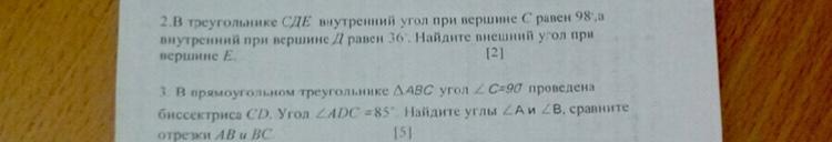 во втором номере, если угол д смежен с углом с то из сумма будет равняться внешнему углу е т.е 134 градуса