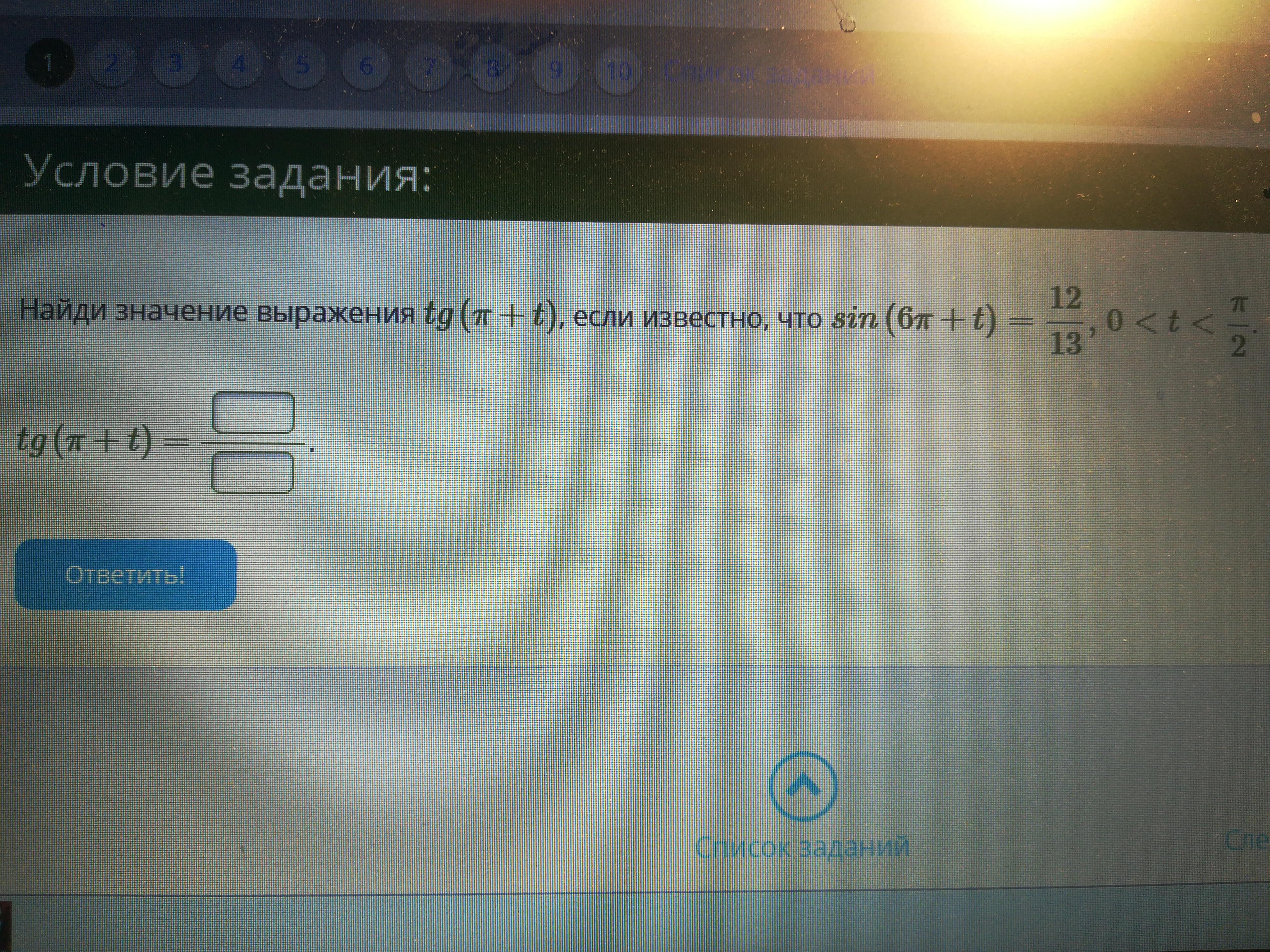 tan(t) = frac{12}{13} div frac{5}{13} = frac{12}{5} = 2.4