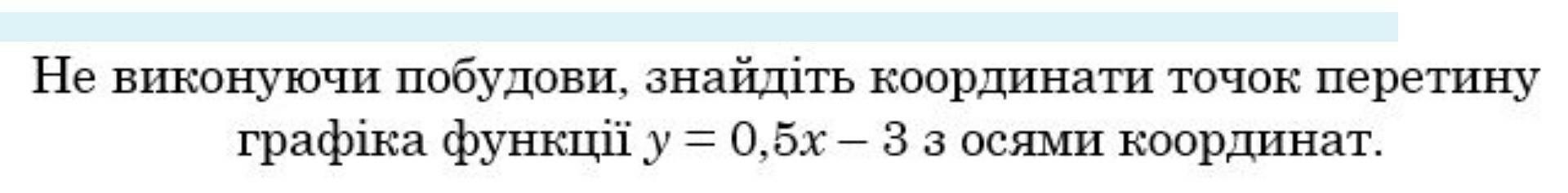 х=0 і у=0,5·0-3 ⇔ у = -3 (замість х підставили 0 у перше рівняння)