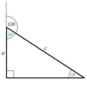 Один из внешних углов прямоугольного треугольника равен 120 градусов. Найдите длину гипотенузы, если известно, что сумма гипотенузы и меньшего катета равна 18 см
