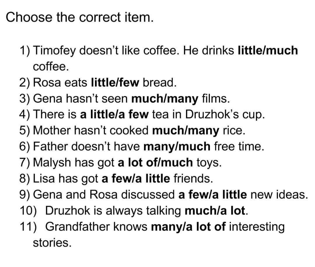 1 little 2little 3 many 4a little 5 much 6 much 7a lot of 8 a few 9a few 10 a lot 11 a lot of