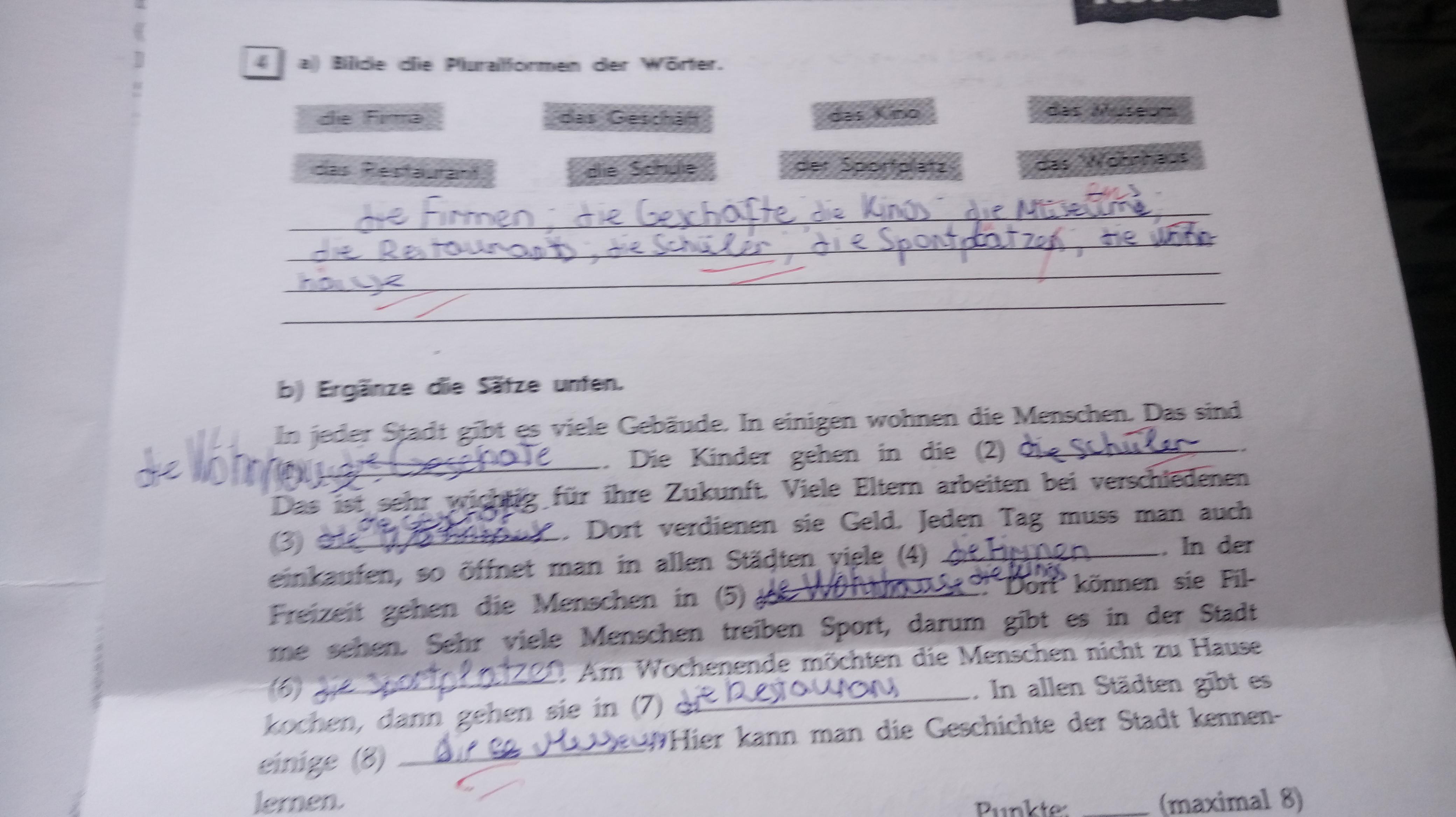 die Firmen, die Geschäfte, die Kinos, die Museen, die Restaurants, die Schulen, die Sportplätze, die Wohnhäuser