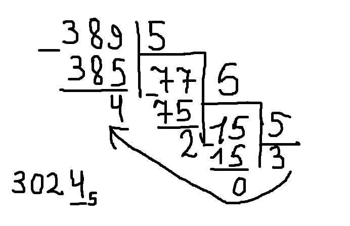 Для перевода из десятичной систему счисления нужно делить число на основание новой системы (то есть 5) и записать остатки от деления в обратном порядке. Последней цифрой в ответе окажется остаток от первого деления на 5.