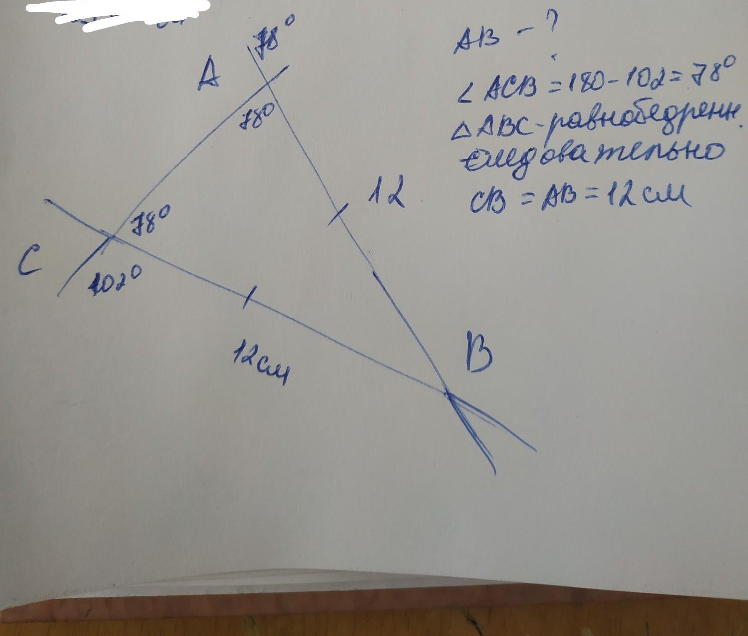 Таким образом треугольник ABC - равнобедренный, тогда AB=BC = 12см.