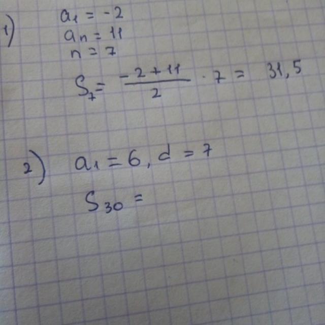 S₃₀ = (2 * 6 + 7 (30 - 1) ) / 2 * 30 = (12 + 203) / 2 * 30 = 107.5 * 30 = 3225