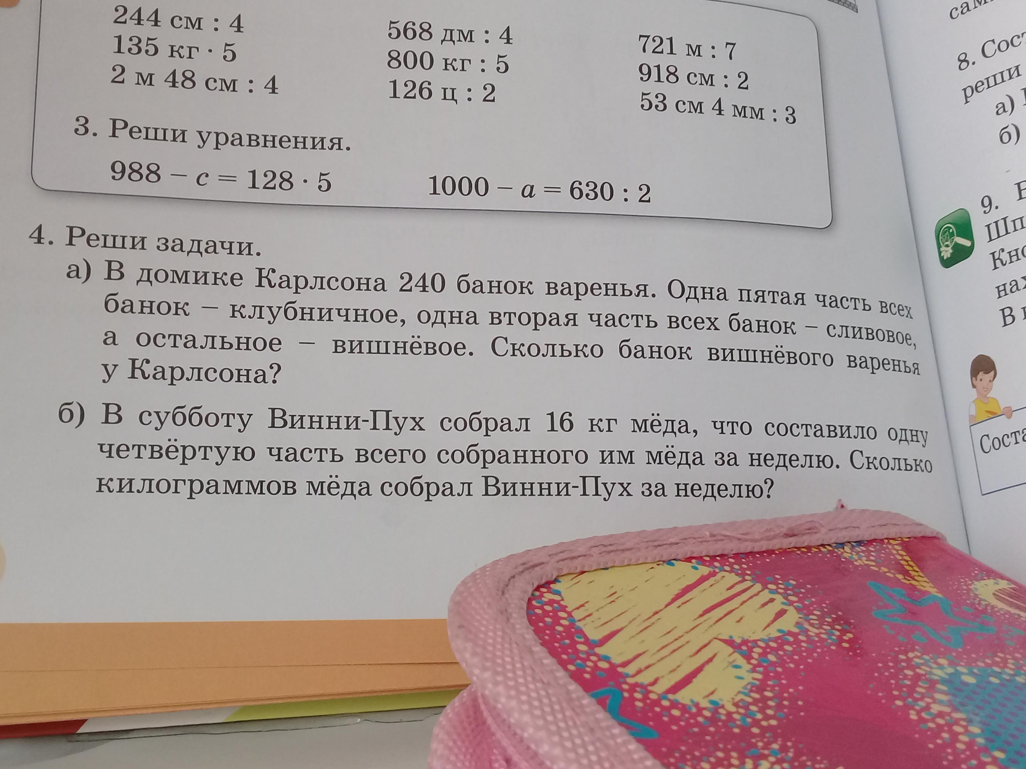 2) 16 кг - это 1/4 всего меда, значит всего он собрал 16*4=64 кг меда