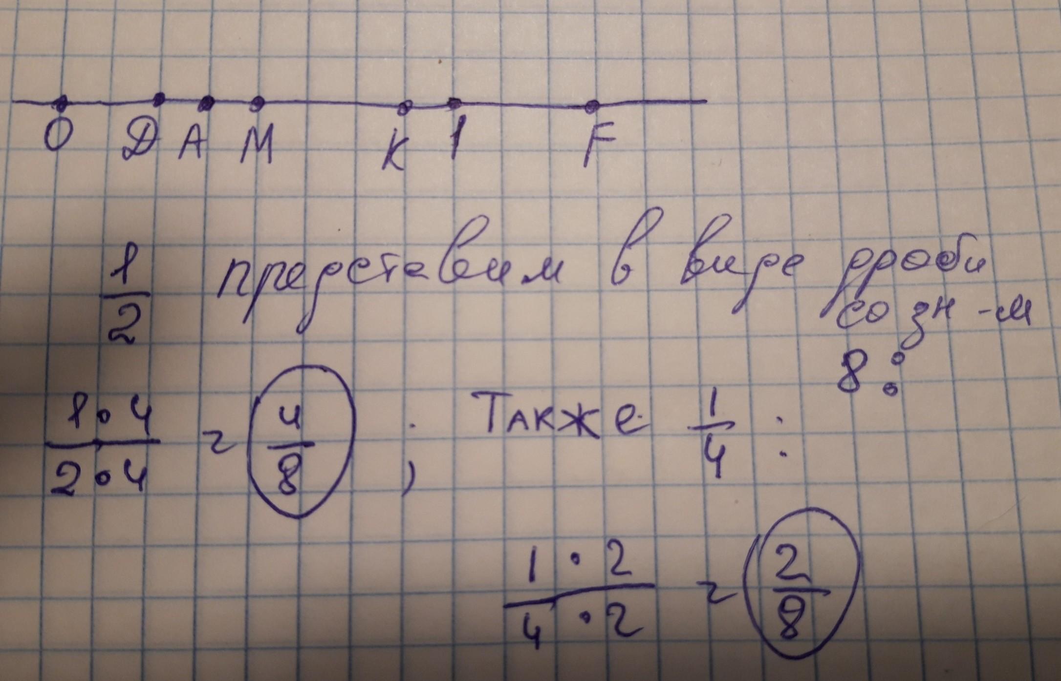 Я не понимаю, как решить этот номер. Если быть конкретнее, то не понимаю, что значит 1/2 и 1/4 и как расставить именно эти две дроби на координатном луче. Объясните пожалуйста.