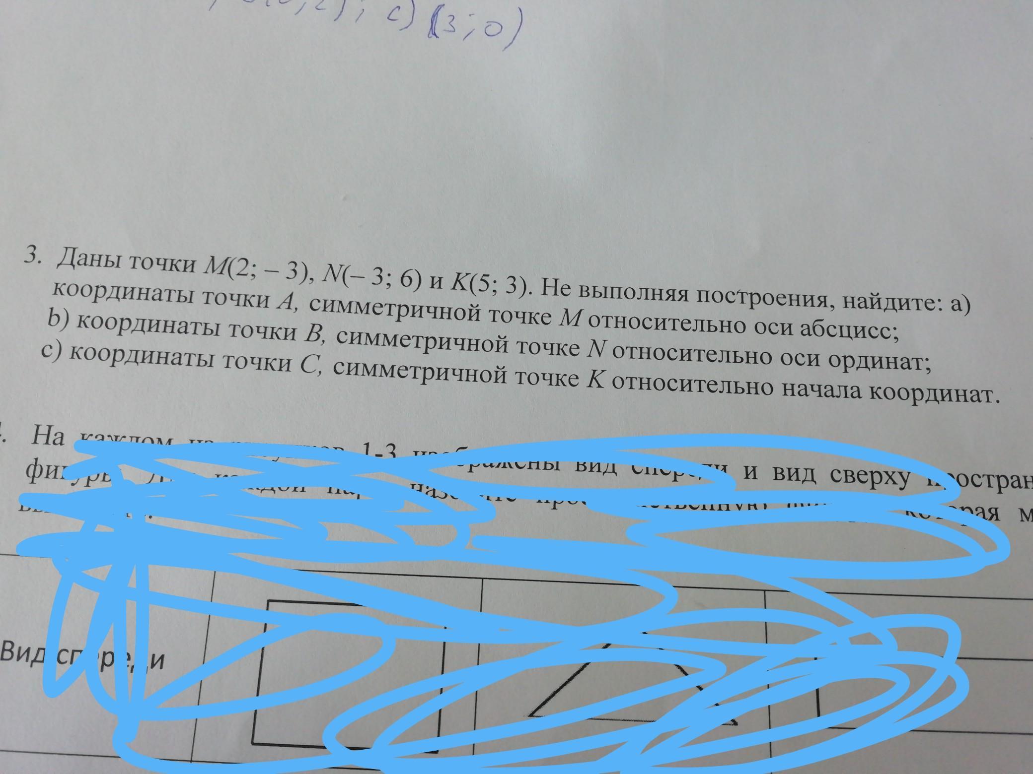 а) точка, симметричная точке М(2,-3) относительно ОХ - это точка А(2,3),
