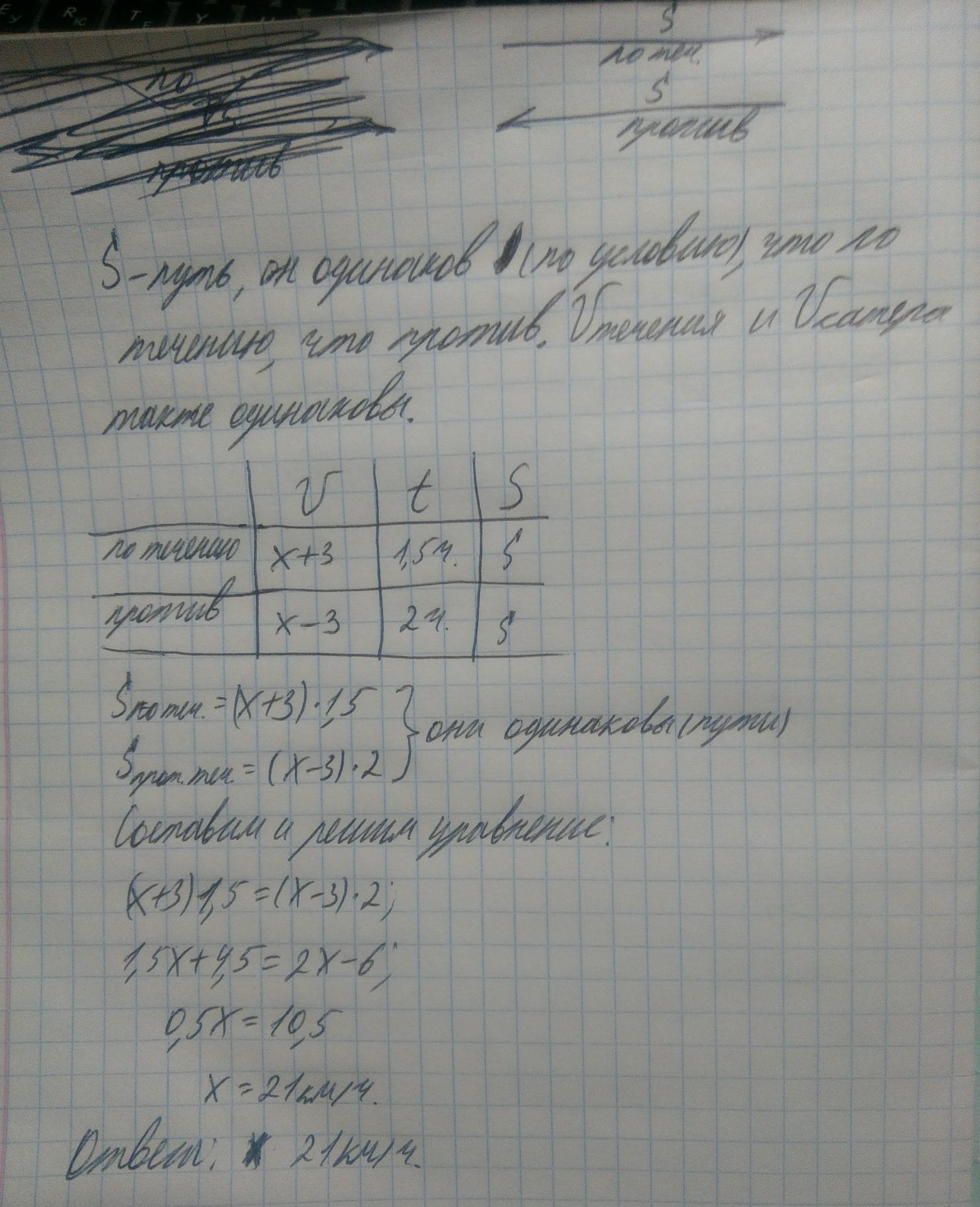 Если против течения, то нужно вычесть, т.к. течение будет его замедлять