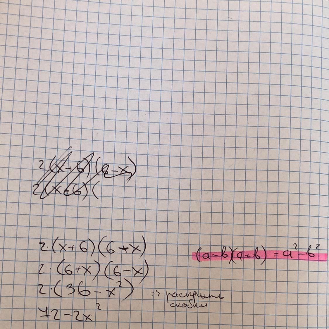 Тогда всё тоже самое ,только ответ не 72-2х^2 , а просто 72 , т.к -2х^2 и +2х^2 сократятся