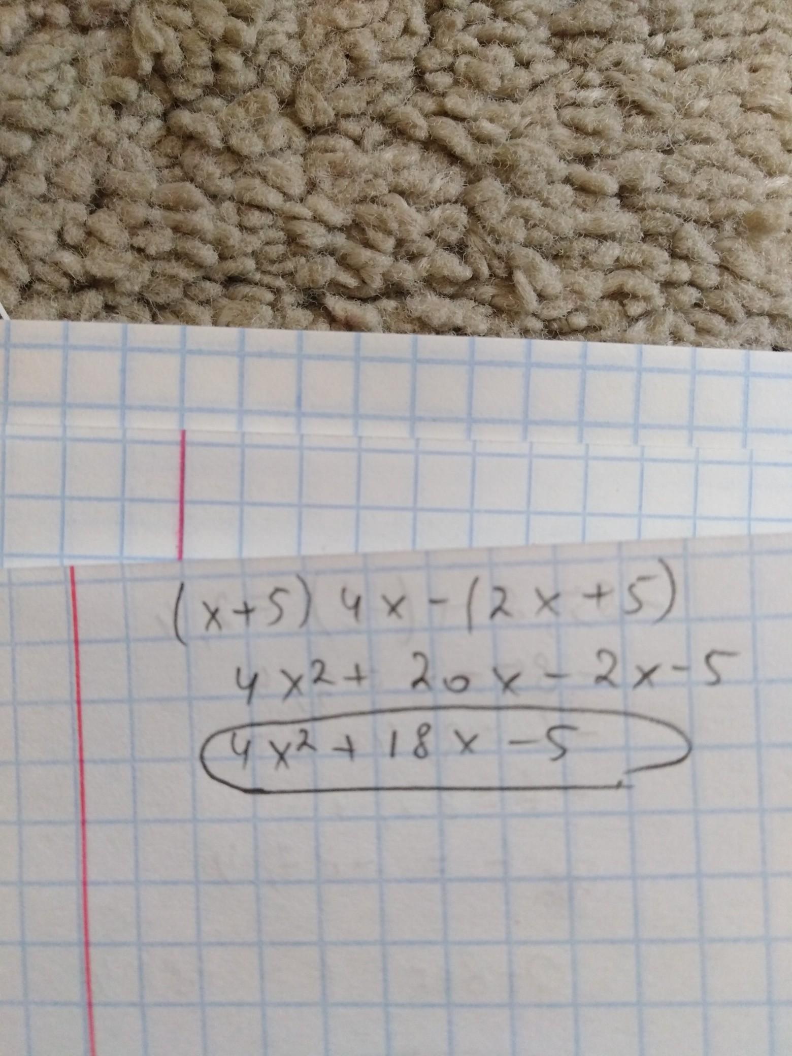 (x + 5)*4x - (2x + 5) = 4х² + 20х - 2х - 5 = 4х² + 18х - 5
