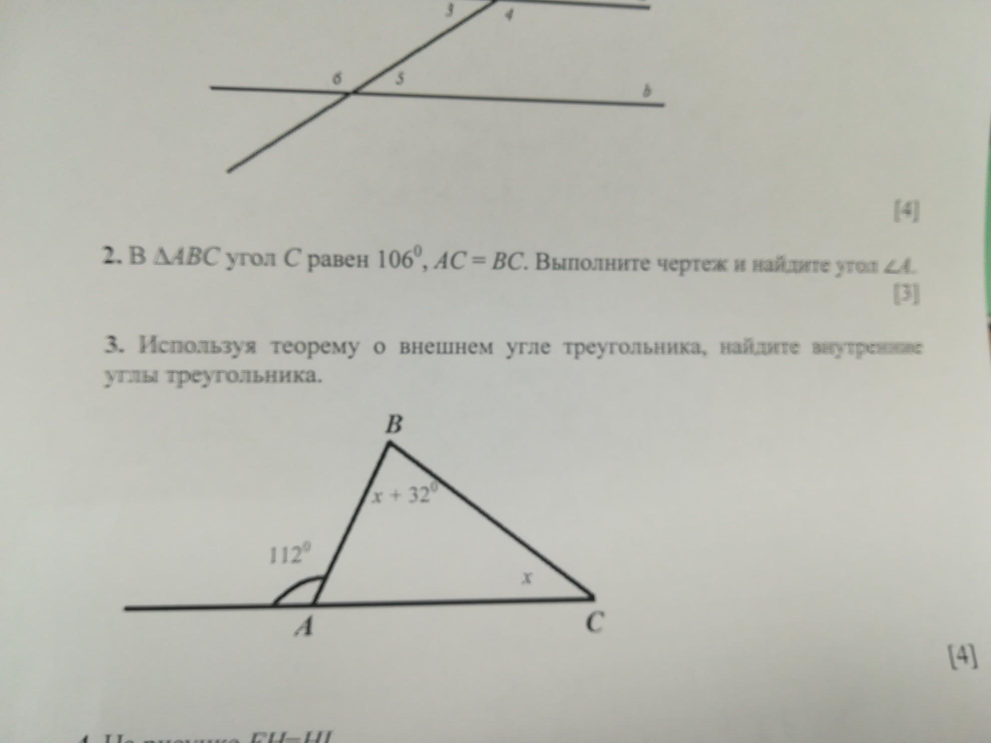 ∠А = ∠В = 1/2 * (180° - ∠С) = 1/2 * (180° - 106°) = 1/2 * 74° = 37°