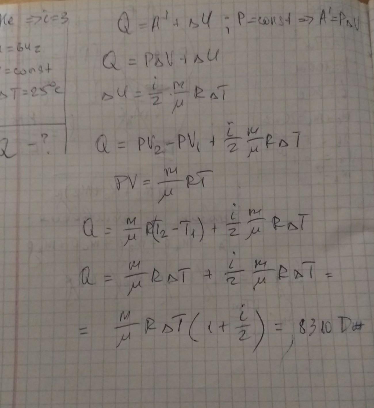 Яку кількість теплоти отримав Гелій масою 64 г, якщо при ізобарному нагріванні його температура збільшилась на 25 градусів