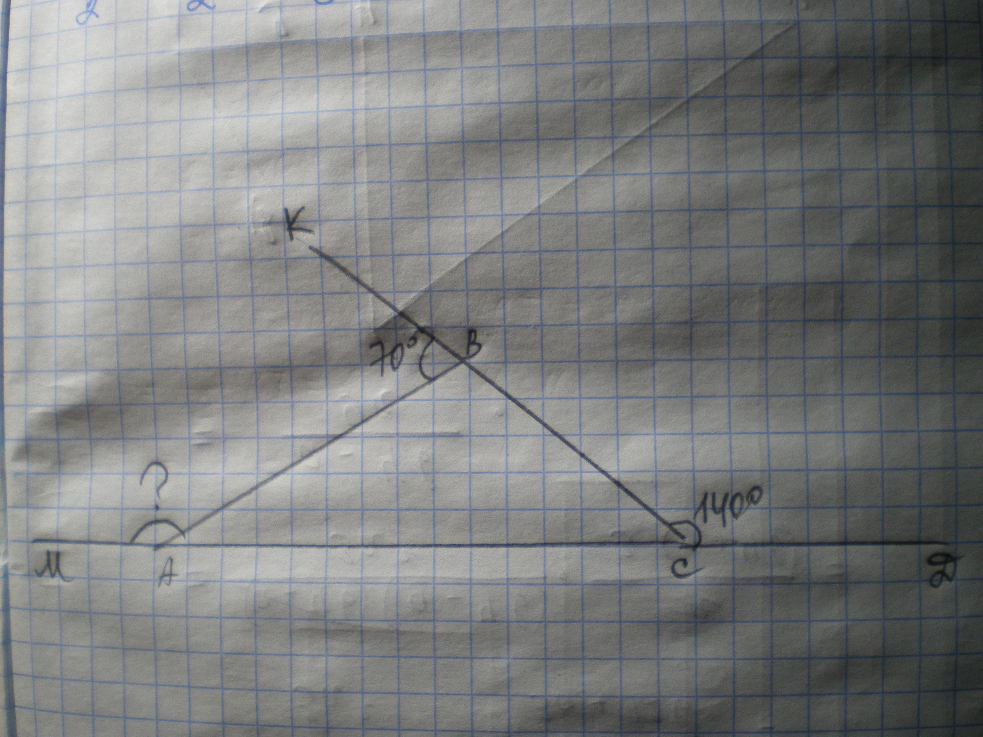 Дано: Δ АВС, ∠АВК=70°, ∠ДСВ=140°. Найти ∠МАВ.