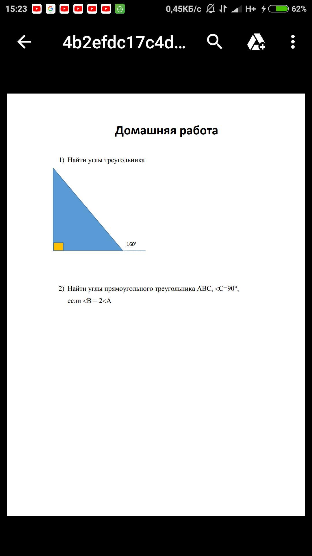 1. Один угол 90(прямой),другой 180-160=20 (смежные) В сумме углы треугольника 180 значит 180-(90+20) =70