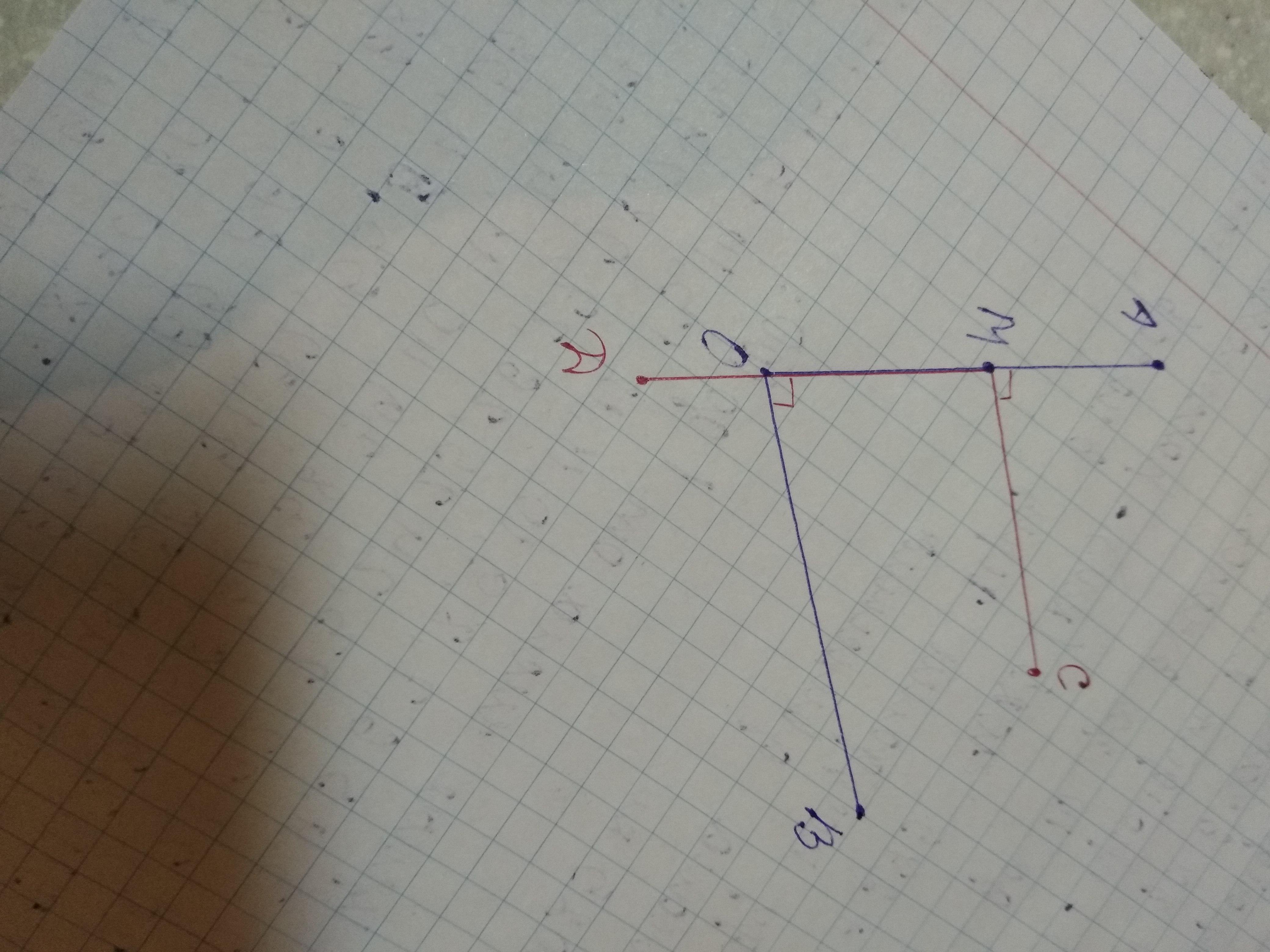 .Начертите произвольный угол АОВ и отметьте точку М на стороне ОА. Постройте угол СМD с вершиной в точке М и сторонами соответственно перпендикулярными сторонам угла АОВ