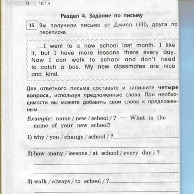 Я очень рад что ты перейшла в новую школу! Это круто, что твои однокласники добрые и дружелюбные! Но у меня есть несколько вопросов. Как называеться твоя новая школа? Почему ты поменяла школу? Сколько уроков в день в твоей новой школе? Всегда ли ты ходишь пешком в школу?