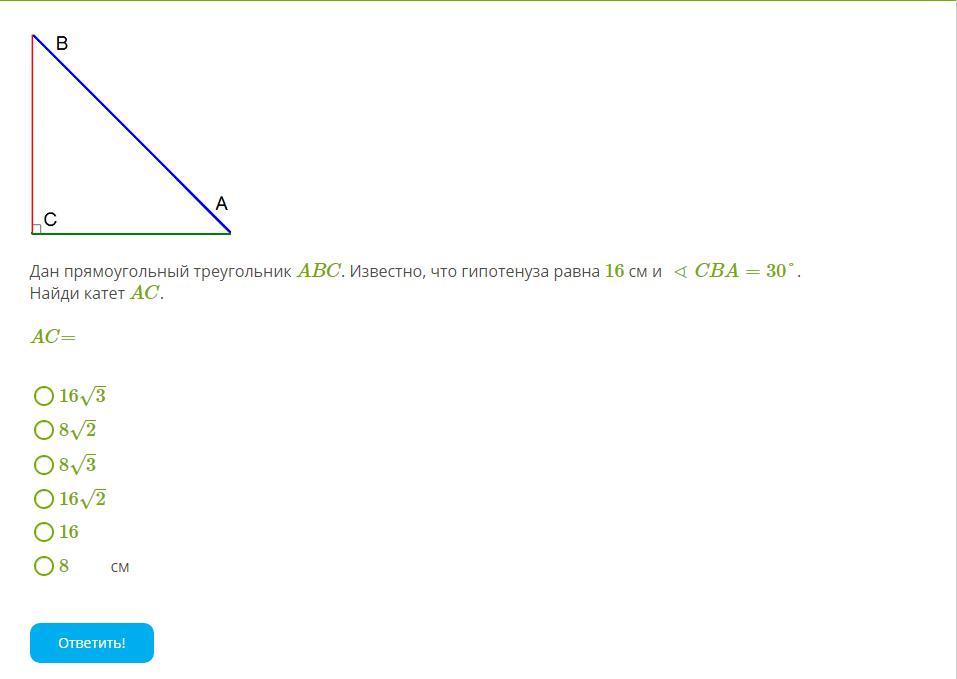 16 корней из 2 это вообще больше гипотенузы