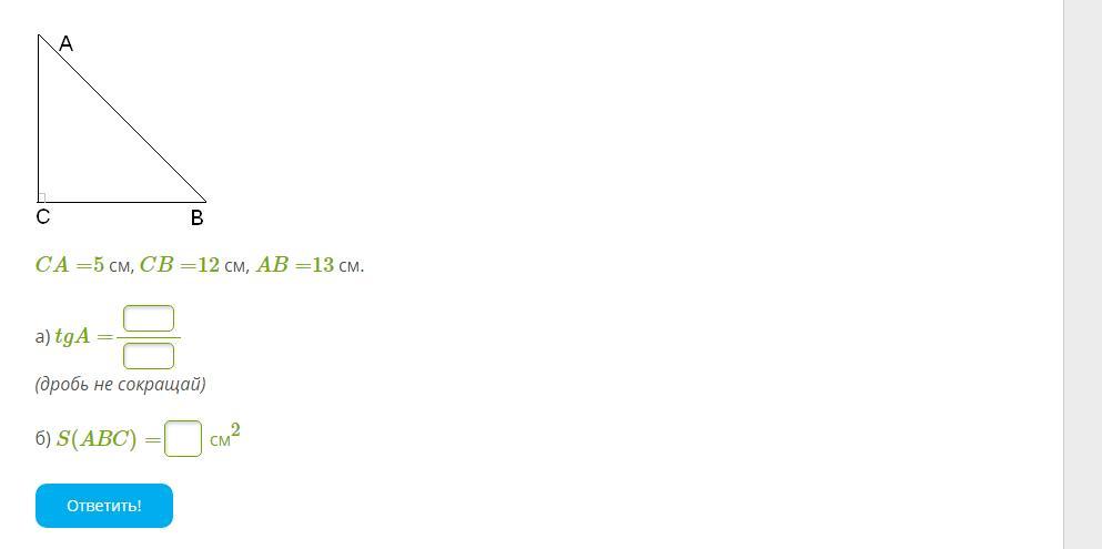 тангенс острого угла в прямоугольном треугольнике- отношение противолежащего катета к прилежащему