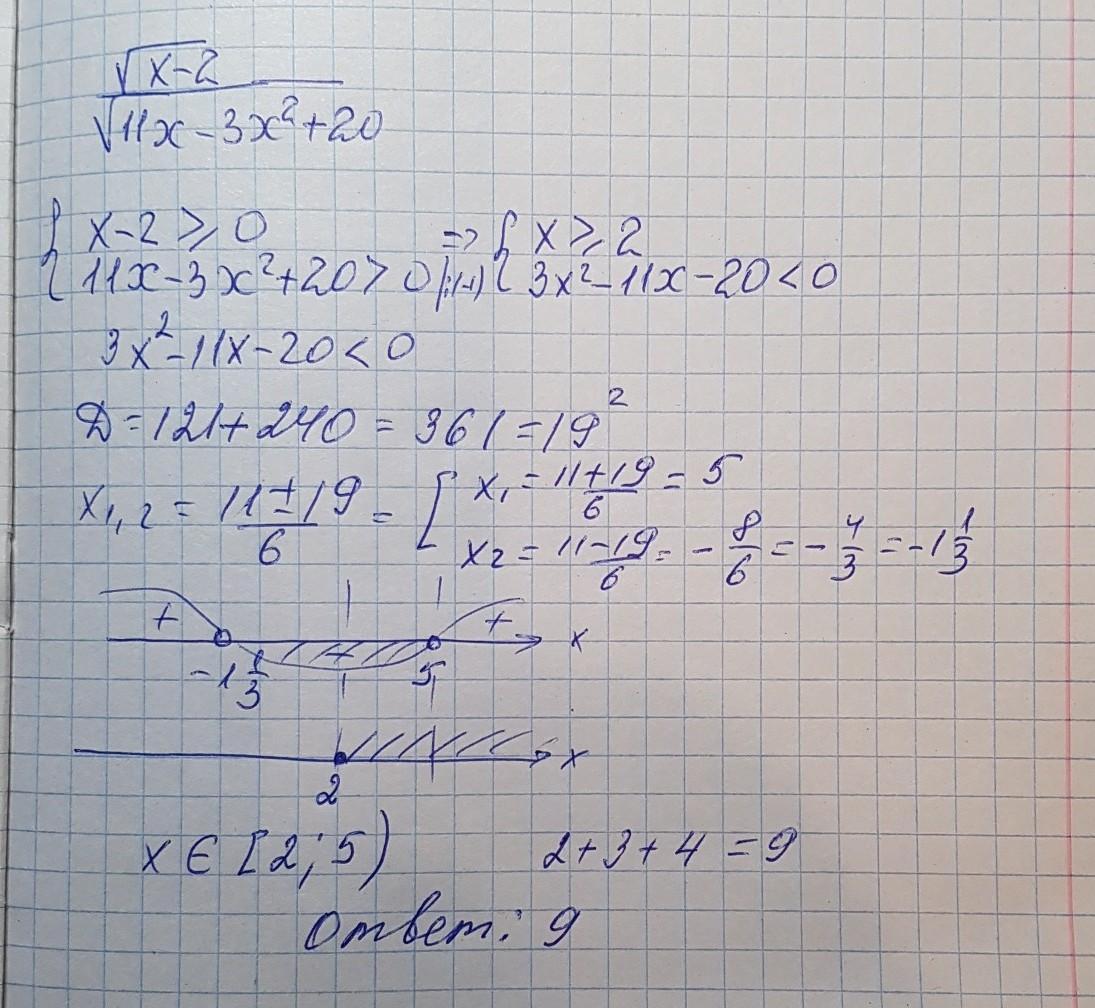 В ответе укажите сумму всех целых чисел, принадлежащих области определения функции.