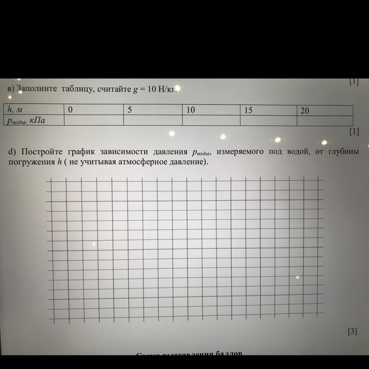 Постройте график в зависимости давления Р воды, измеряемого под водой, от глубины погружения h