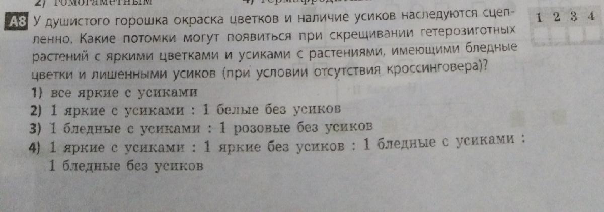 По условию признаки ярких цветков и наличия усиков сцеплены, кроссинговер отсутствует, поэтому у гетерозиготного растения образуется только два сорта гамет АВ и аb.