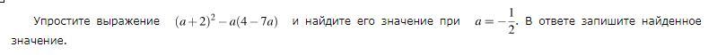 3. "Если а= -12 (одна вторая),то (а+2)2(в квадрате) -а(4-7а)= а2(в квадрате) + 4а+4-4а-7а2 (в квадрате)=8а2 (в квадрате) +4= 8* (- 12)2(в квадрате) +4=8* 14+4=2+4=6