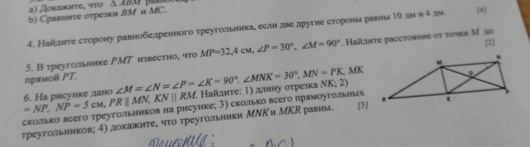 1) в ΔMKN NK-гипотенуза, MK-катет лежащий против угла 30° равен половине гипотенузы. MK=NP=5 см
