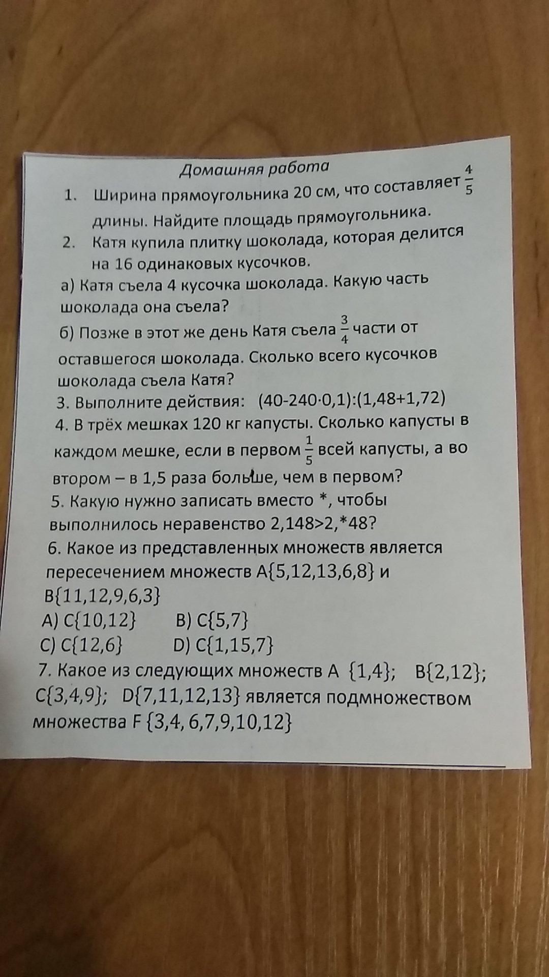 Так 20-ширина и это есть 4/5 часть от длины,значит длина 25 то есть 20•5/4=25,площадь прямоугольника равна произведению длины на ее ширину т .е 25•20=500