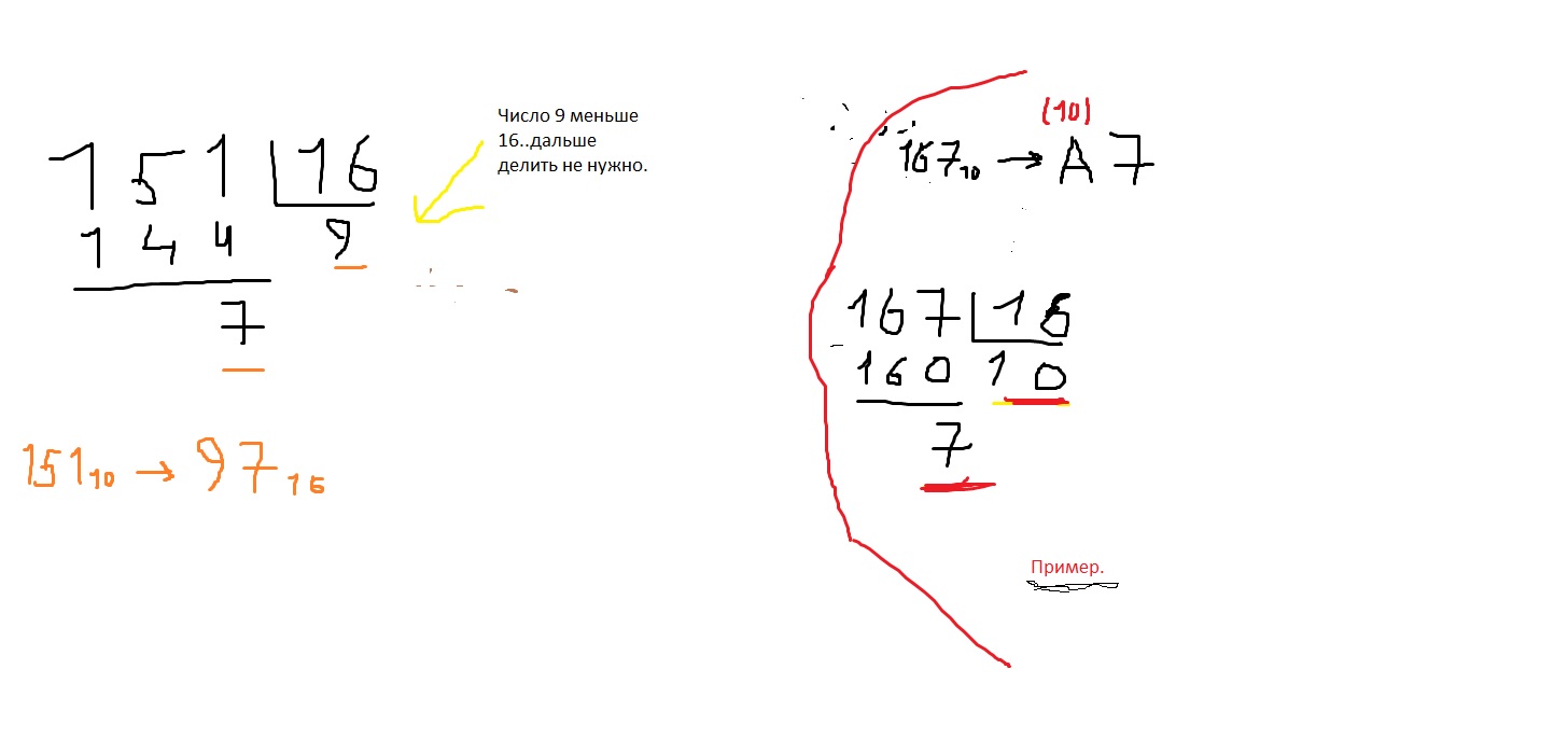 1. чтобы перевести десятичное число 151 в двоичную систему счисления (0,1 - два символа) ...надо его постоянно делить на 2, а остатки записать в обратном порядке. Аналогично и с восьмеричной системой счисления (0,1,2,3,4,5,6,7 - восемь символов)..и с шестнадцатеричной системой, только здесь для записи чисел в шестнадцатеричной системе используются десятичные цифры от 0 до 9 и латинские буквы от A до F. т.е. 0,1,2,3,4,5,6,7,8,9, А(10), B(11), C(12), D(13),E(14), F(15).