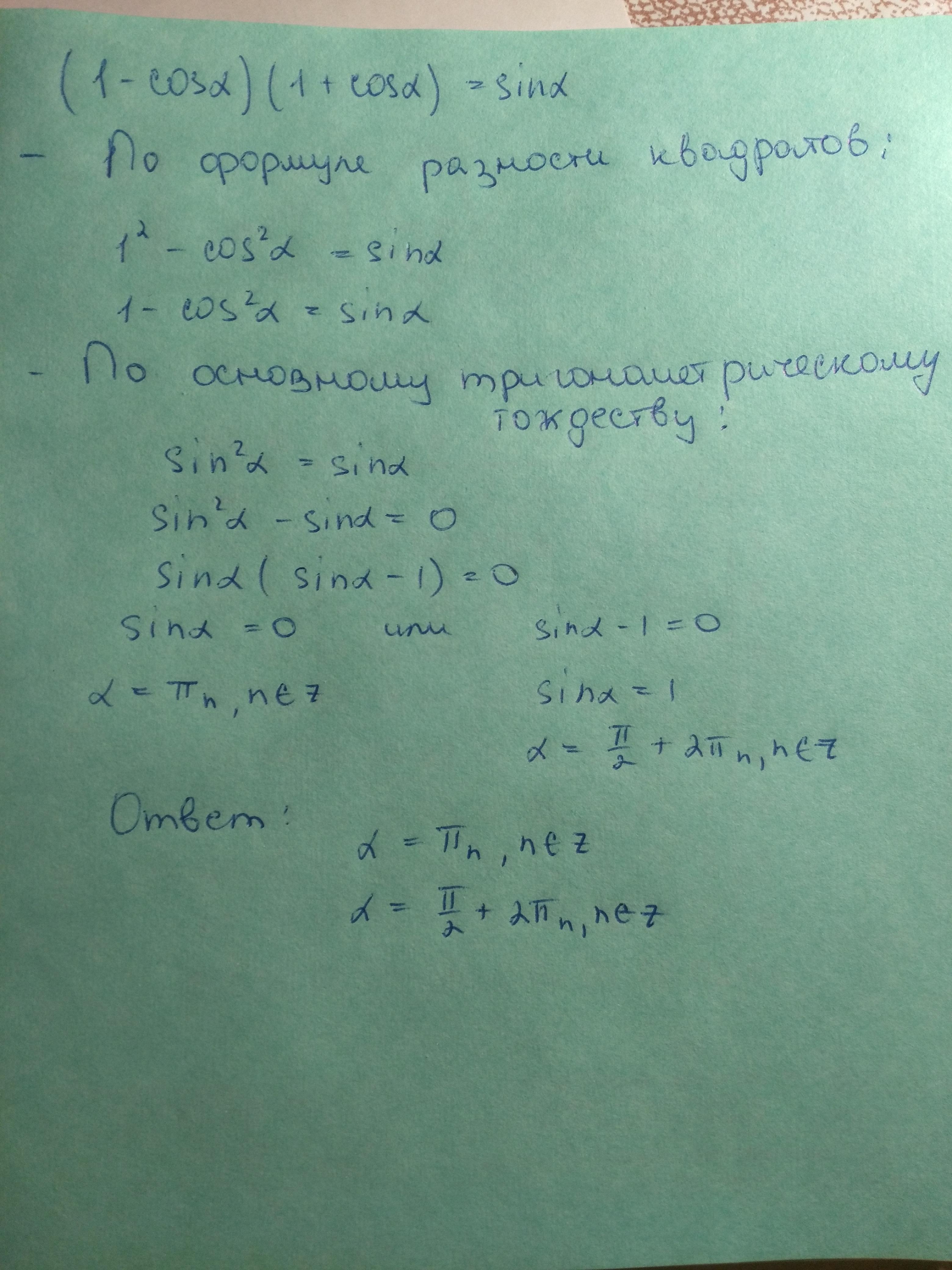 (1-cos альфа) (1+cos альфа)