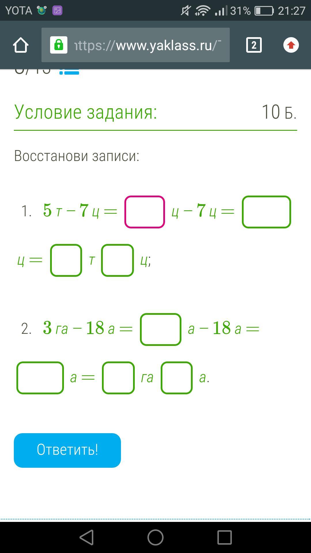 1) = 50ц - 7ц = 43ц = 4т 3ц
